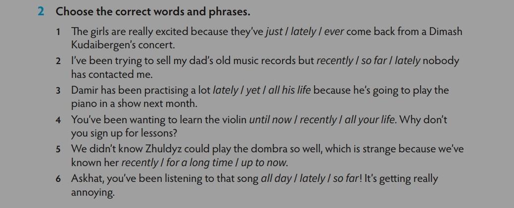 1. The girls are really excited because they’ve just / lately / ever come back from a Dimash
