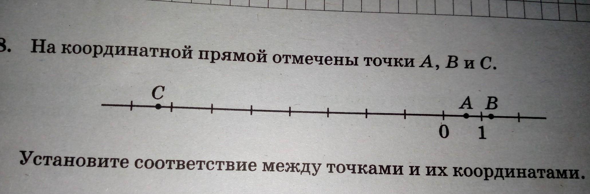 на координатной прямой отмечены точки A B и C Установите соответствие между точками и их координатами