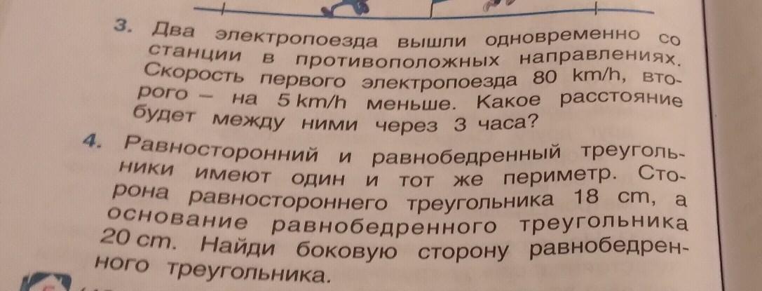 Расстояние между поездами через 3 часа.
