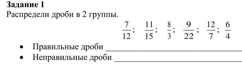 Неправильные дроби:8/3 ; 12/7 ; 6/4