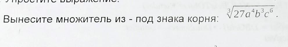 ∛(27a⁴b³c⁶)=∛(3³a³ab³c³c³)=3abcc∛a=3abc²∛a