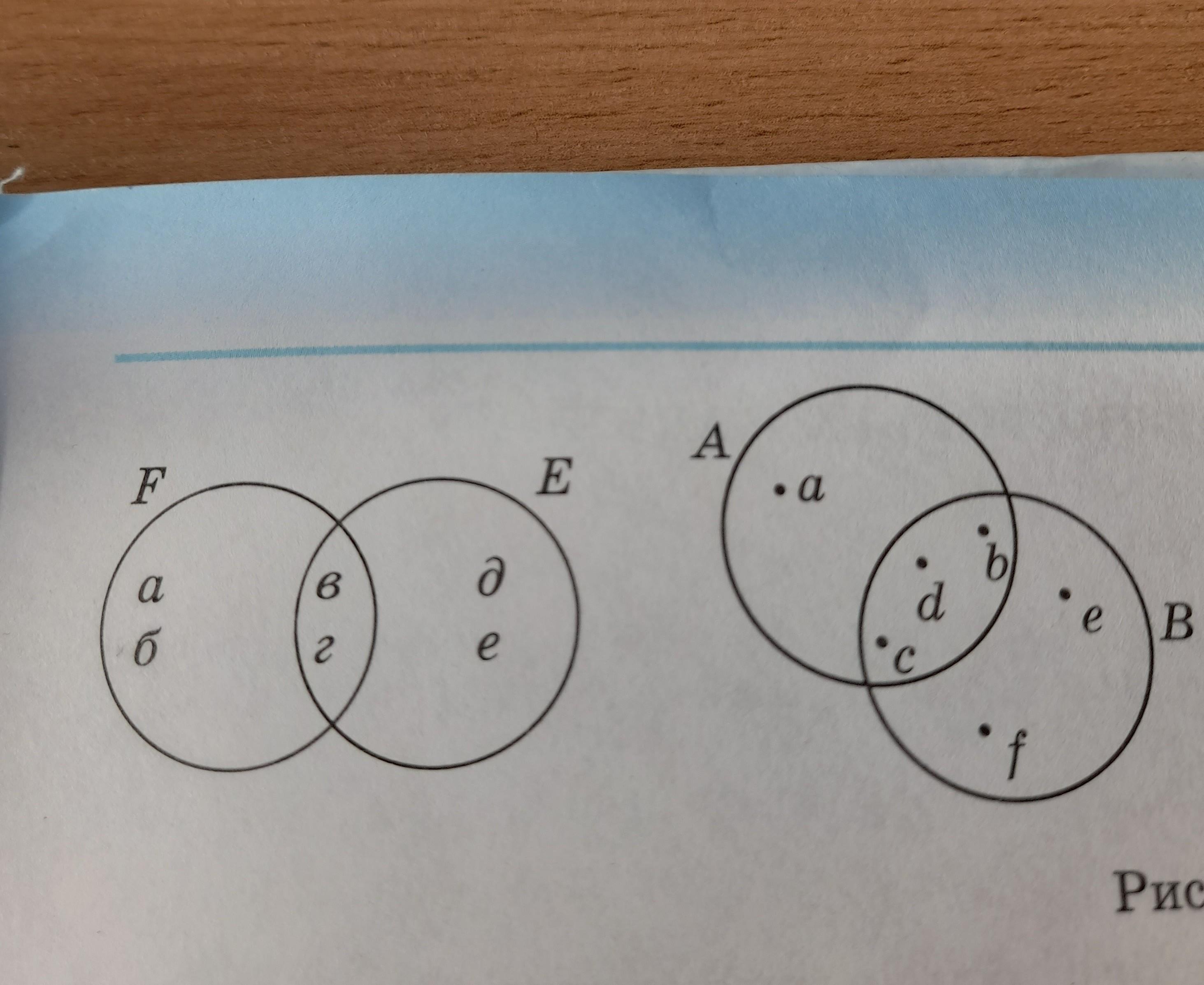 перечислите элементы объединения и пересечения множеств,изображённых на рисунке (64)