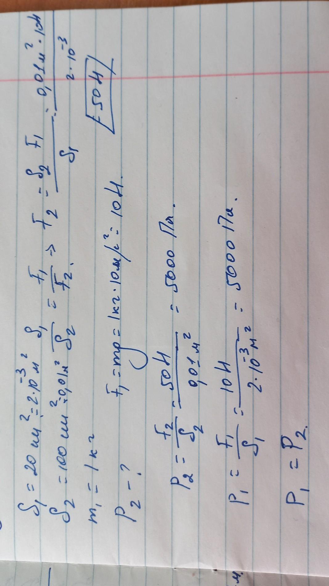 Площадь малого поршеня гидравлического давления 20см², болшого 100см².Кими вес поршня 1кг