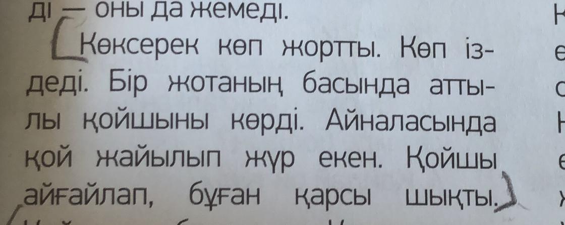 Коксерек долго странствовал. Много времени что то искал. На вершине хребта он увидел ПАСТУХА. Вокруг пасутся овцы. Пастух кричал и протестовал.