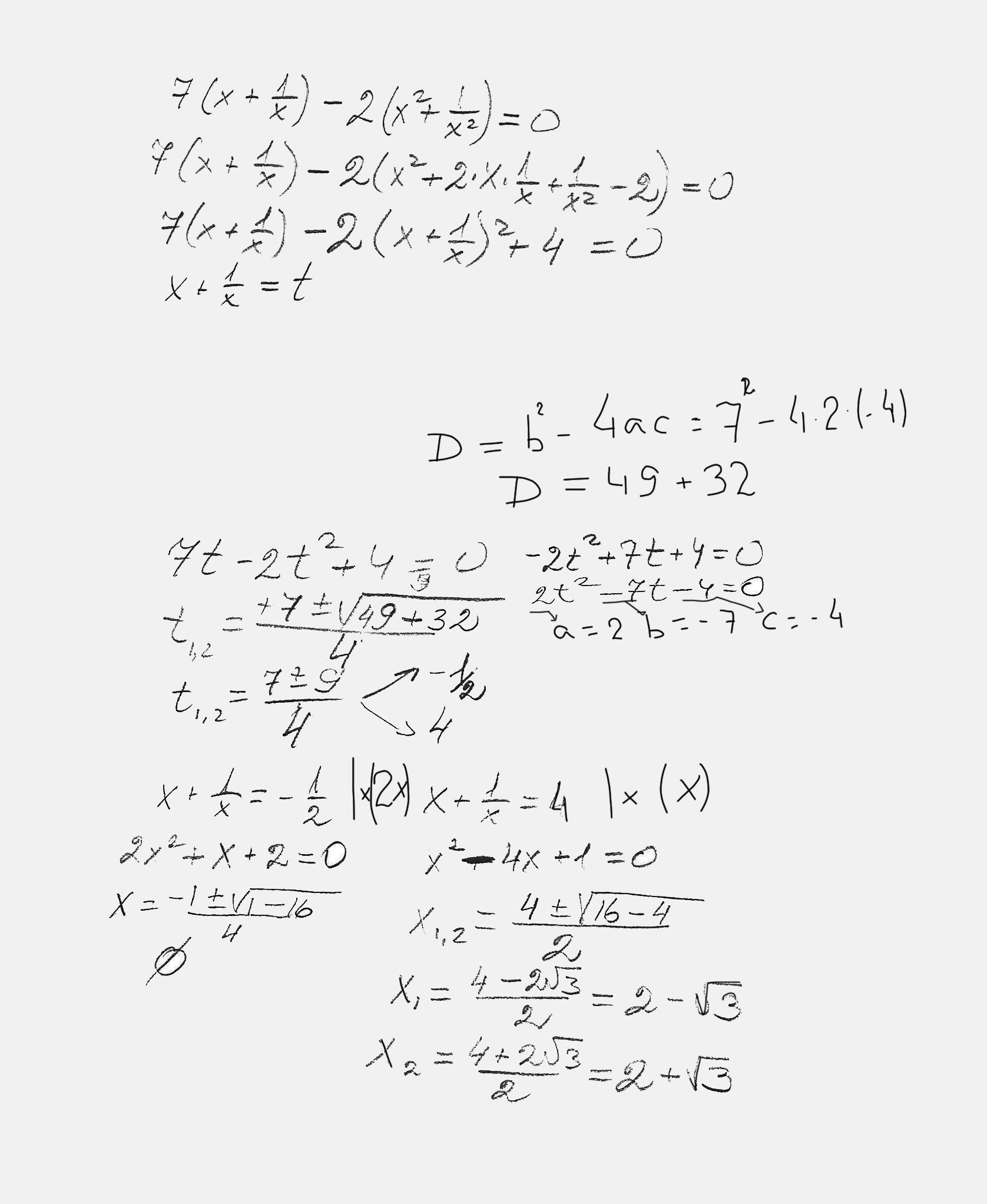 когда решаем уравнение подстановки ,то в первом случае домножаем на 2х обе части уравнения,а во втором просто на х обе части уравнения , знаменатель сокращается и получается простое квалратное уравнение. (это для тех,кто плохо увидит мои записи)