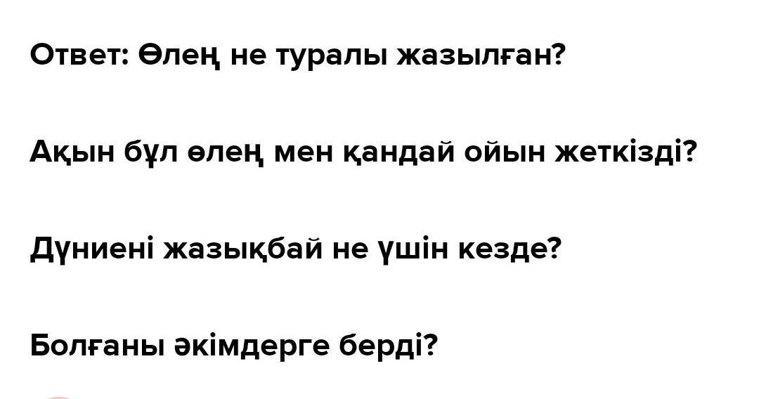 ЖАЗЫЛЫМ 7 Өлеңнің мазмұнына байланысты 5 сұрақ жаз. Сұрақтарды күрделі сөйлем түрінде ыңғайластық және қарсылықты жалғаулықтардың бірі қатысатындай етіп Құра.