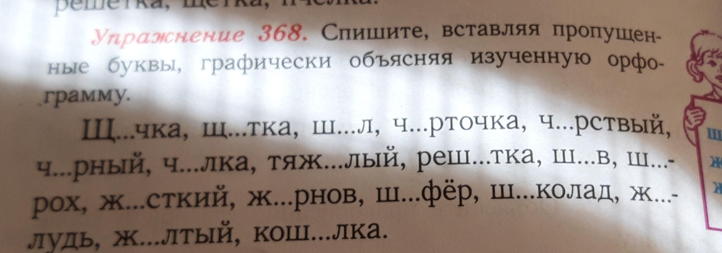Щёчка, щётка, шёл, чёрточка, чёрствый, чёрный, чёлка, тяжёлый, решётка, шов, шорох, жёсткий, жёрнов, шофёр, шоколад, жёлудь, жёлтый, кошёлка