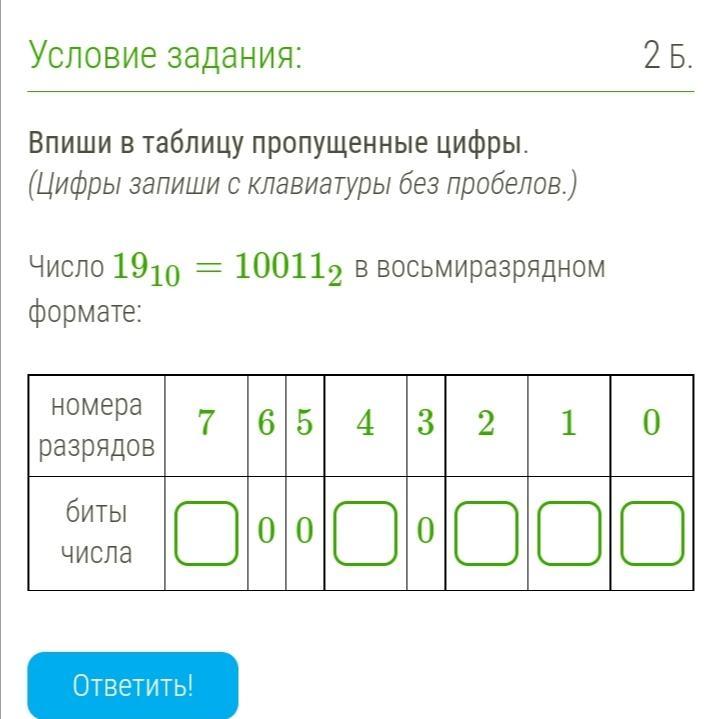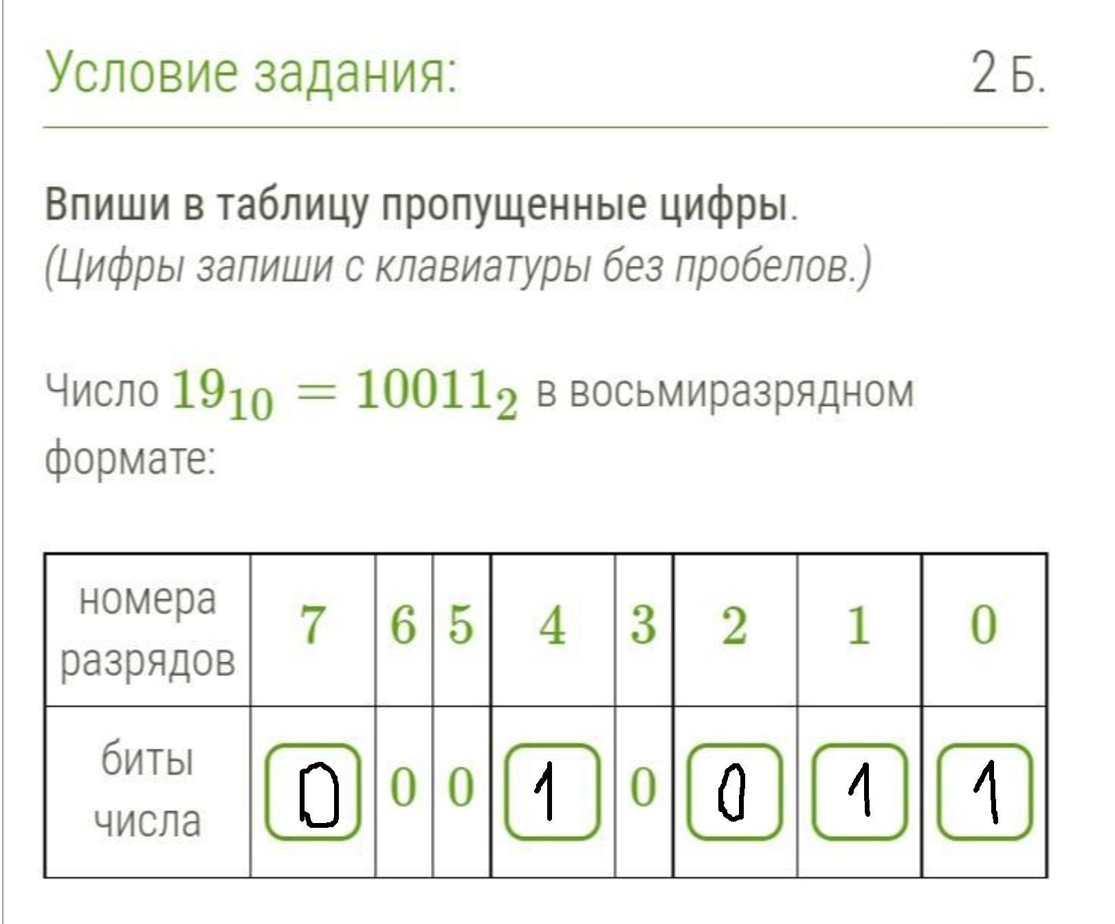 даже не знаю как комментировать, тут все задание заключается только в том, чтобы цифры из числа в таблицу снизу переписать...