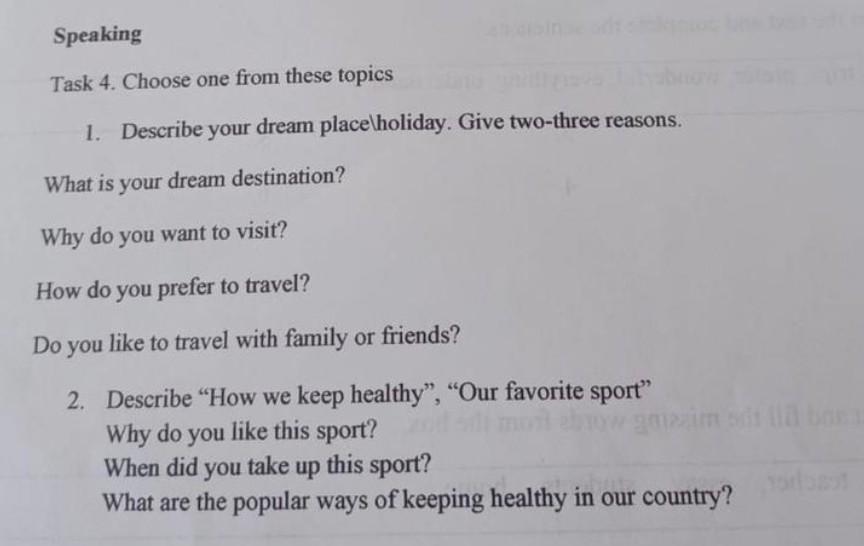 если будете сами делать, в говорении как правило нужно сказать 10-12 предложений, по 2-3 на каждый вопрос в теме. я напишу про 1 тему чтобы быстрее ответить