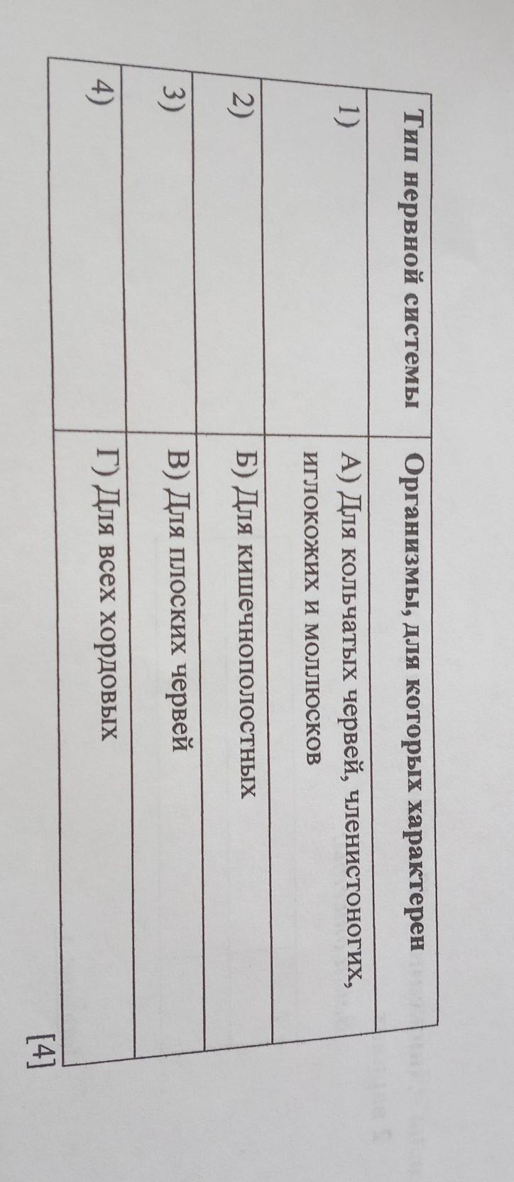 Тип нервной системы Организмы, для которых характерен 1) А) Для кольчатых червей, членистоногих, иглокожих и моллюсков 2) Б) Для кишечнополостных 3) В) Для плоских червей 4) Г) Для всех хордовых