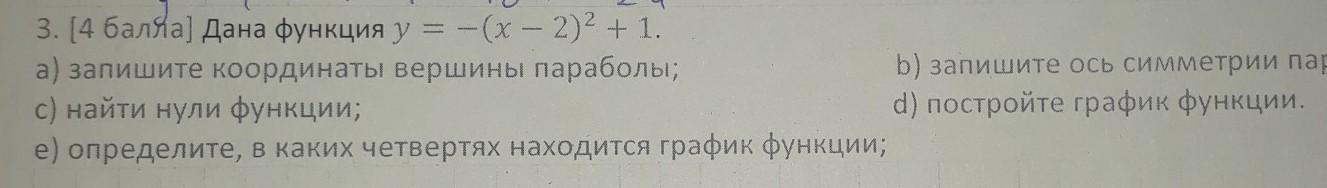а) Координаты вершины параболы можно определить по виду записанной функции: В( 2 ; 1 ) .