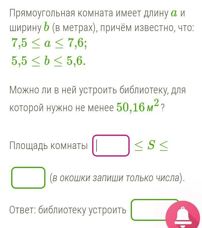 Ответ: 41.25<S<42.56, библиотеку устроить (не получится)