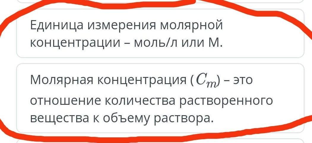 Выбери правильные выводы о молярной концентрации раствора.