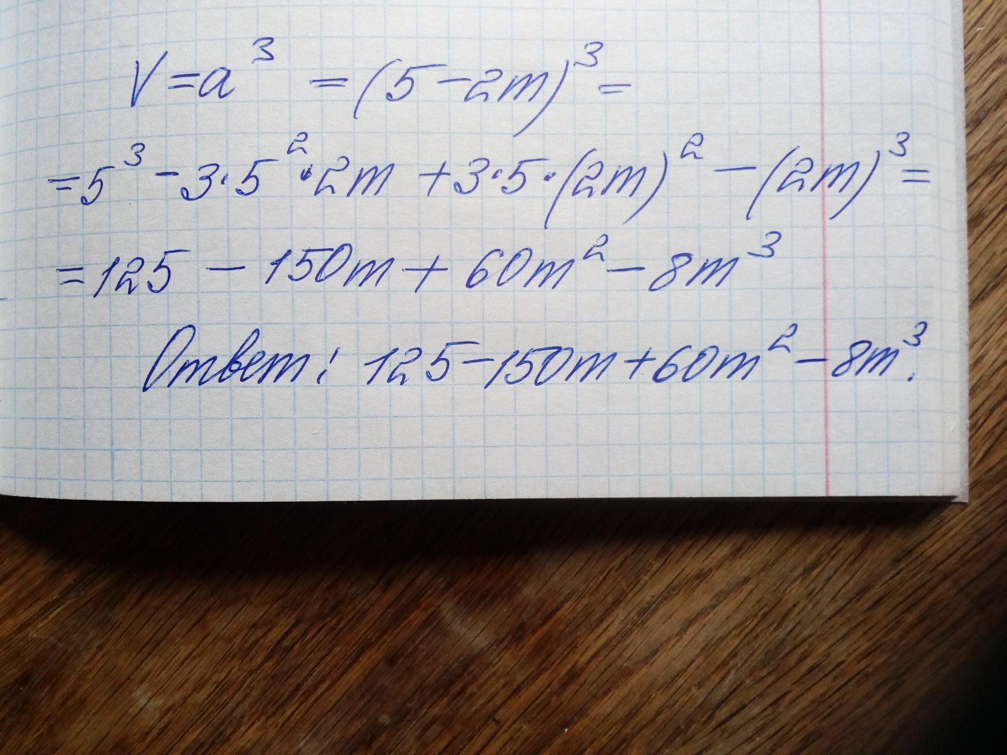 3. Напишите выражение для нахождения объема куба, используя формулу V=a³, если а=5-2m. Полученный результат представьте в виде многочлена. ДАМ 50 БАЛЛОВ