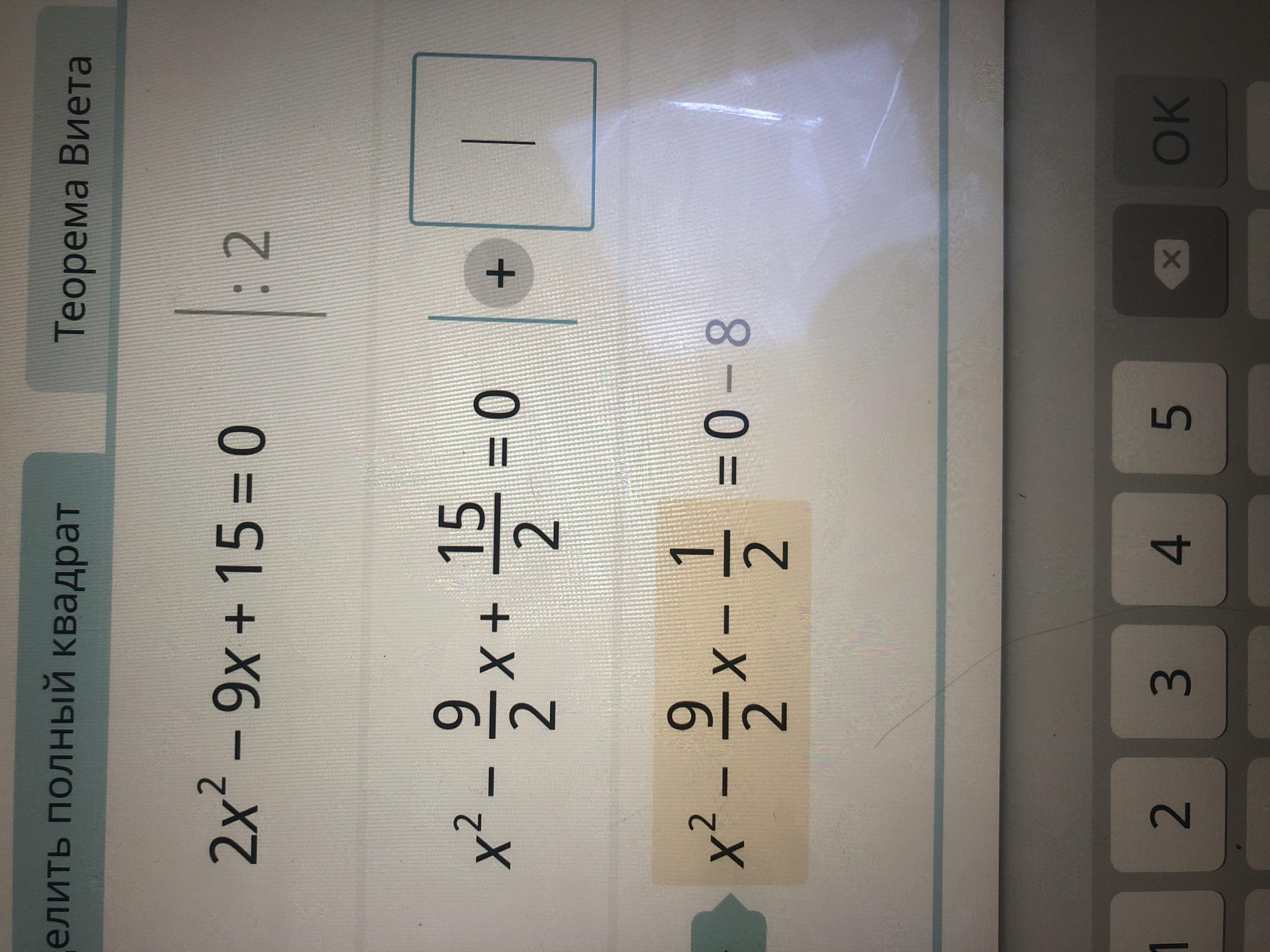 x^2-(2*9/2*2)x+15/2=0