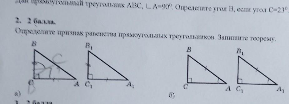 2. 2 балля. Определите признак равенства прямоугольных треугольников. Запишите теорему. B Б BI B А сі 4, с А С А, M