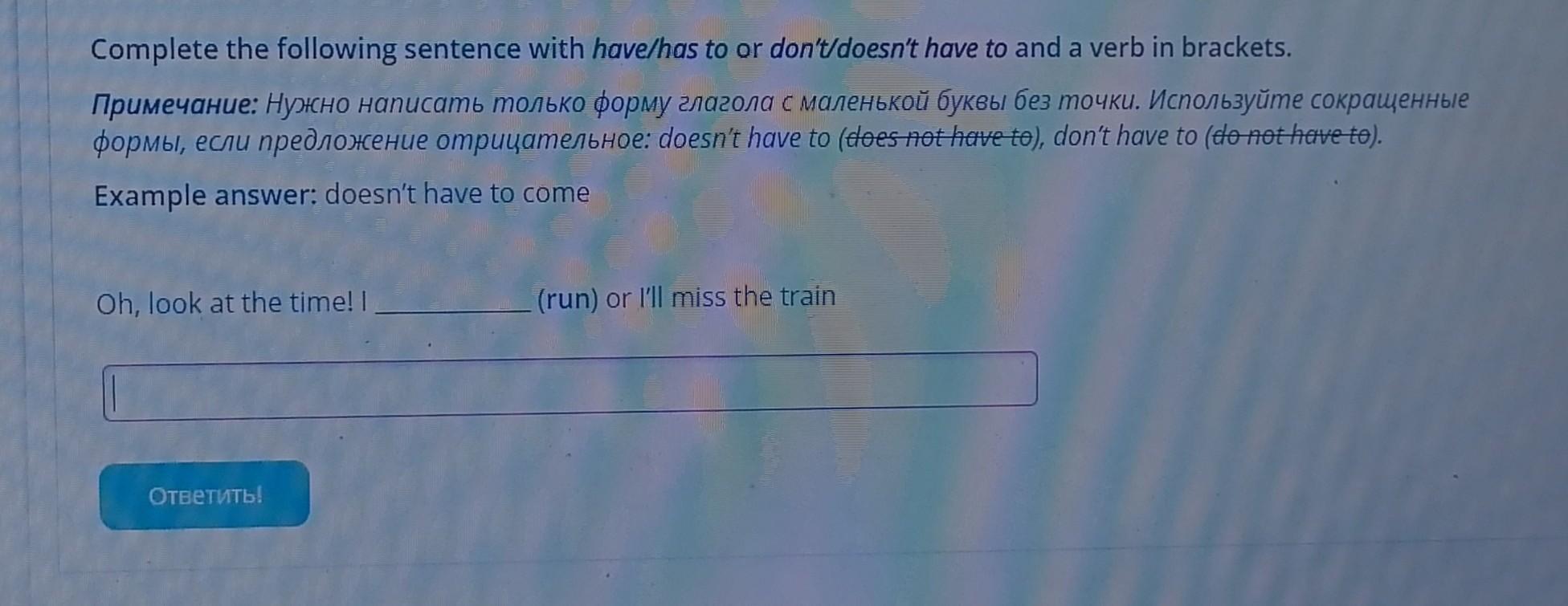 Oh, look at the time! I have to run or I’ll miss the train. (Ох, смотри сколько времени! Мне нужно бежать, иначе я опоздаю на поезд)