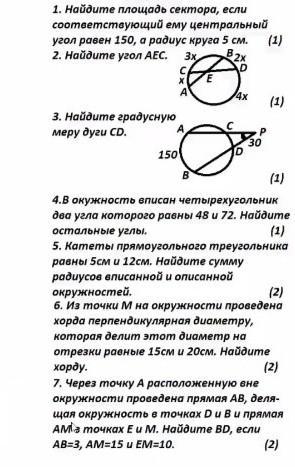 7) теорема осекущих :АВ×АД=АМ×АЕ