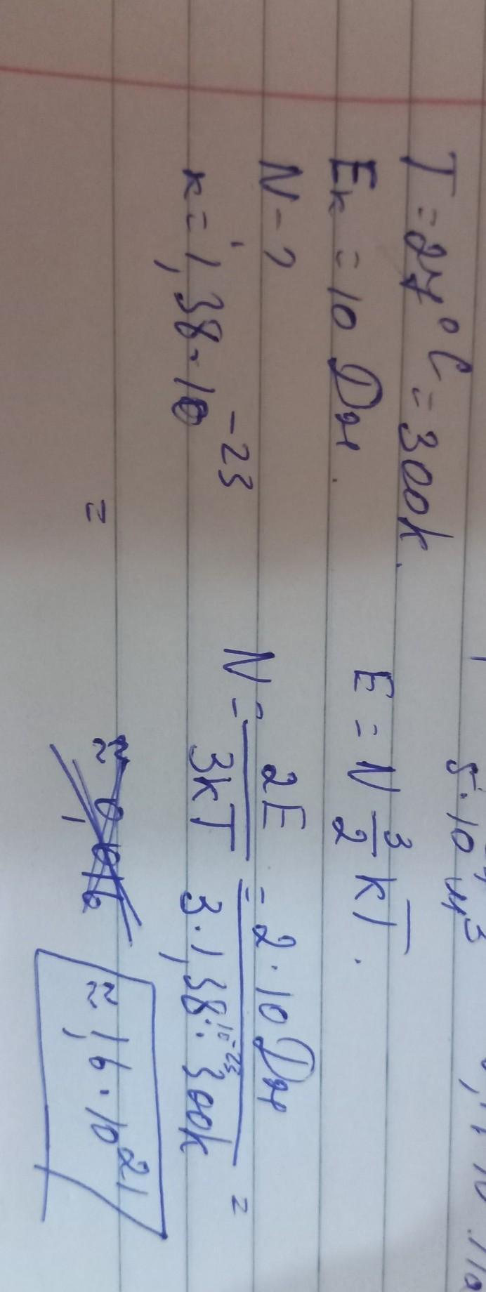 Аргон перебуває за температури 27 °С. Кінетична енергія теплового руху всіх його молекул дорівнює 10 Дж. Визначте число молекул аргону.