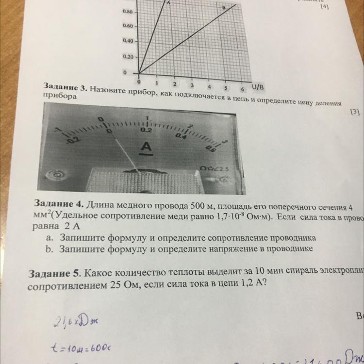 Амперметр, цена деления если по верхней шкале то 0.1А, если по нижней то 0,02А, включается в цепь в любом месте( т.к. ток ниоткуда не приходит и никуда не уходит, то на всех участках цепи он одинаковый) главное чтобы + к +, а - к -