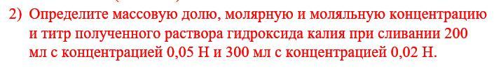 Сm(KOH)=(0.2*0.05+0.3*0.02)/(0.3+0.2)=0,032 моль/литр