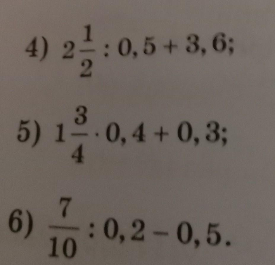 6) 7/10 : 0.2 - 0.5 = 0.7 : 0.2 - 0.5 = 3.5 - 0.5 = 3