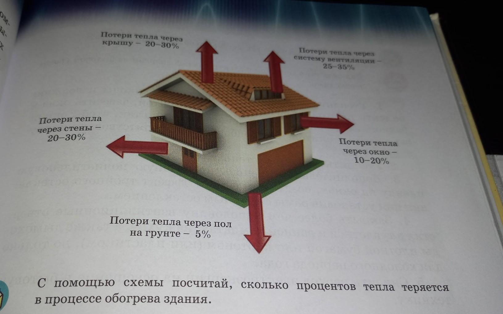 с помощью схемы посчитай, сколько процентов тепла в процессе обогрева здания. 10 баллов