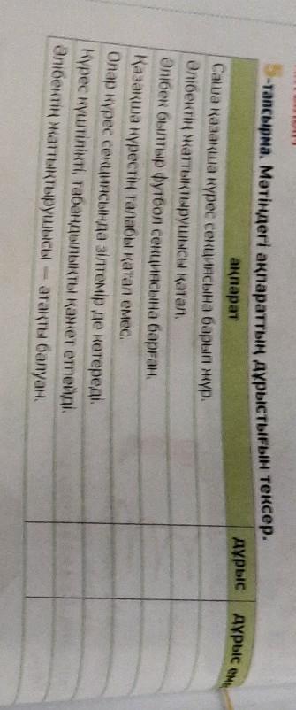 -тапсырма. Мәтіндегі ақпараттың дұрыстығын тексер.