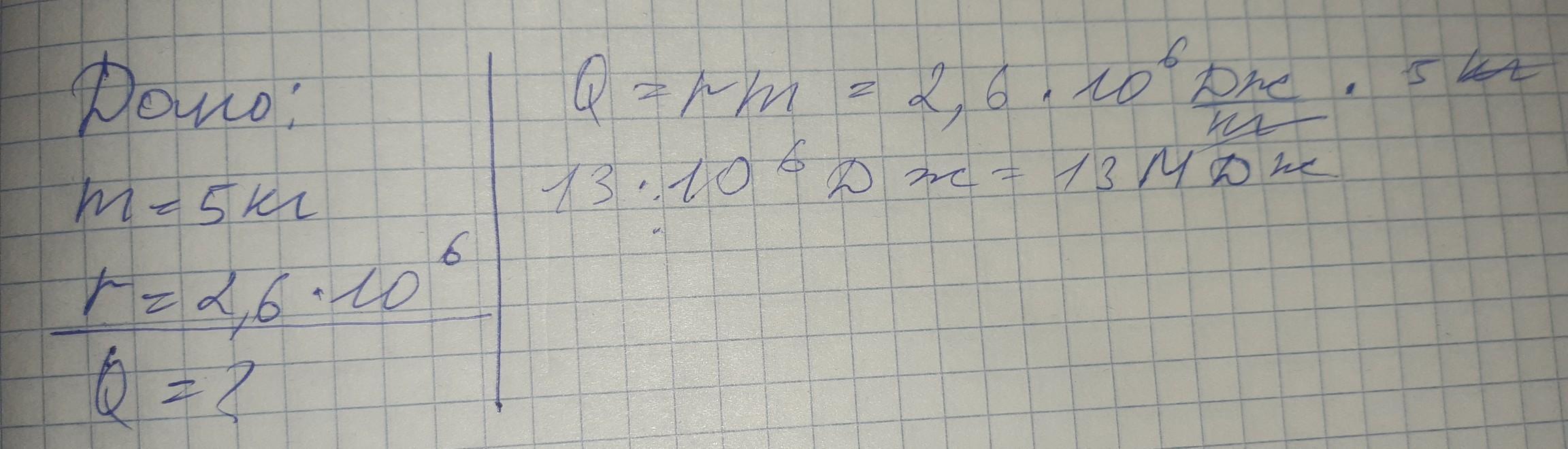 Какое количество теплоты необходимо затратить для превращения в пар 5 кг воды, находящийся при температуре кипения? Удельная теплота парообразования воды 2,6×10 6