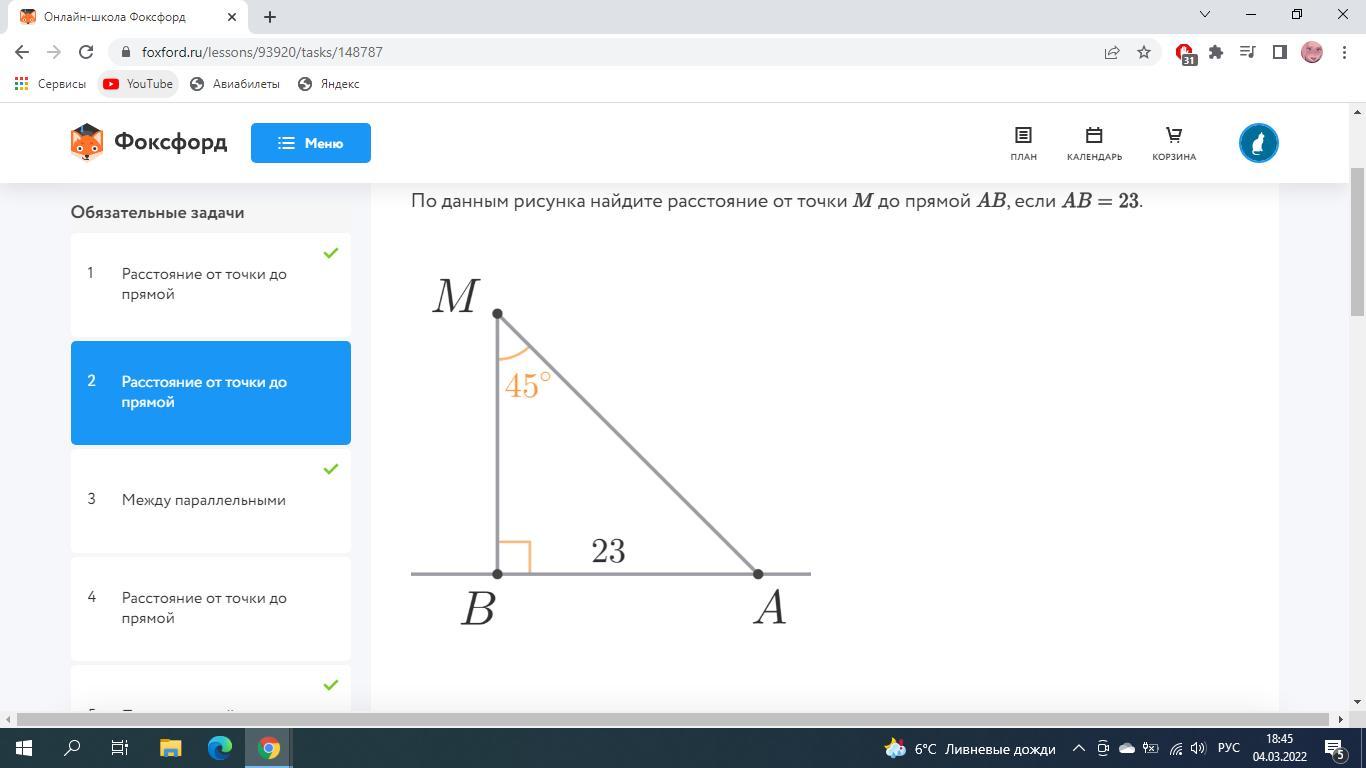 сначала надо узнать Кут А е то 180-90-45=45 е то означает что трыкутнык ВМА ривнобедреный значит за теоремою бични стороны равны. значит МВ=ВА а потом за теоремою Пифагора МА^2=ВА^2+МВ^2. ; МА^2= 23^2+23^3. ;. МА^2= 1058 и потом МА=√1058 МА=23√2