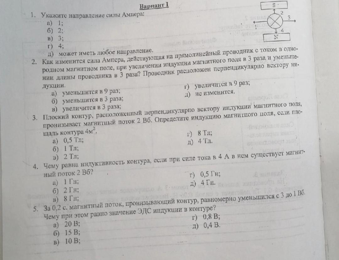 1) Применяем правило левой руки: 4 пальца по току (от наблюдателя, видим оперение стрелочки), линии магн. индукции ⊥ ладони от N к S, тогда большой палец, отогн. на 90°, покажет направление силы Ампера это напр. № 3.