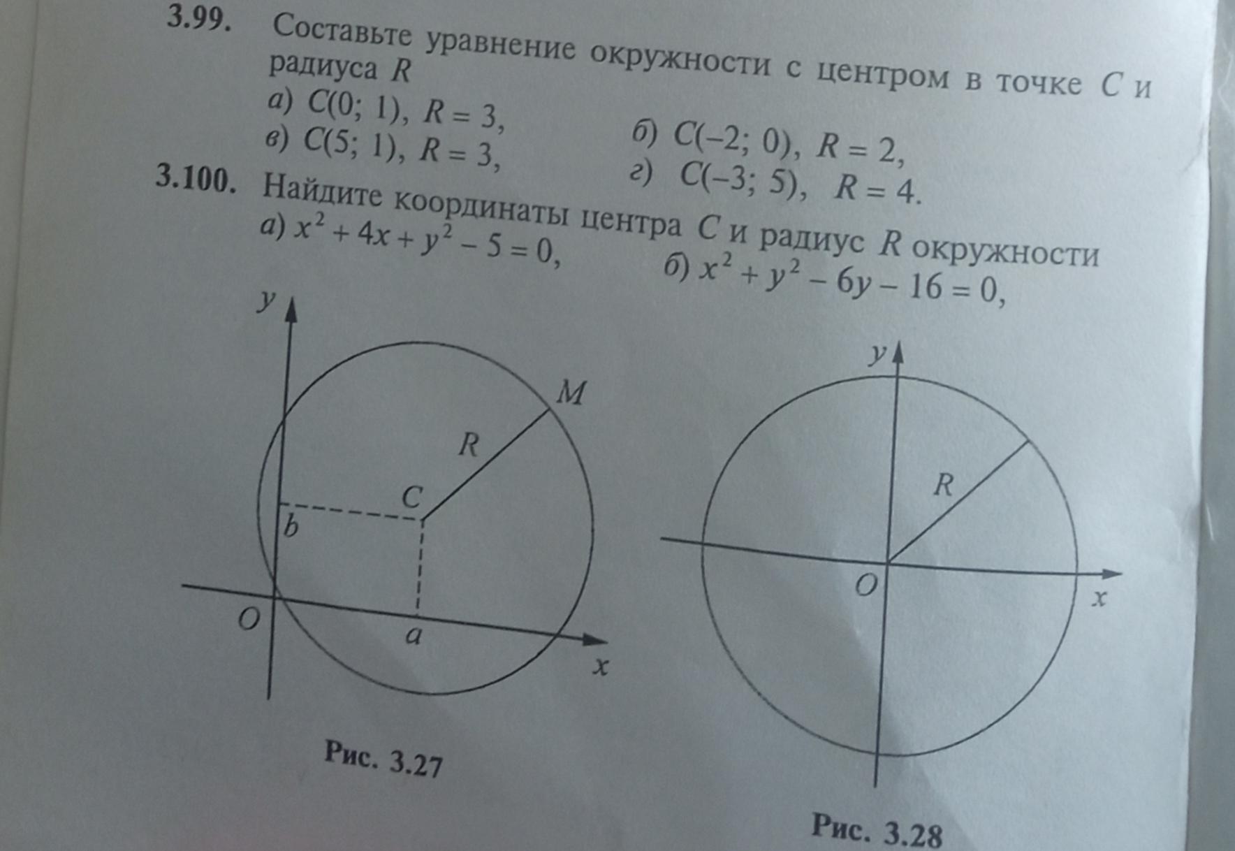 3.100 а) x²+4x+4-4+y²-5=0 (x+2)²+y²-9=0 (x+2)²+y²=9 C(-2;0) R=3