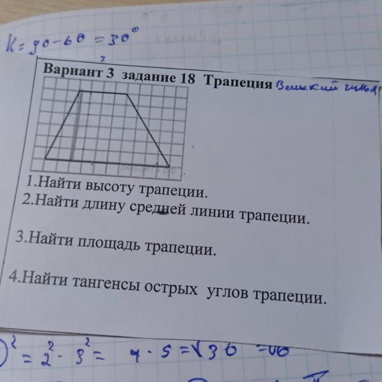 4) проводим обе высоты, из прямоугольных треугольников по клеткам считаем катеты и находим тангенс - отношение противолежащего к прилежащему