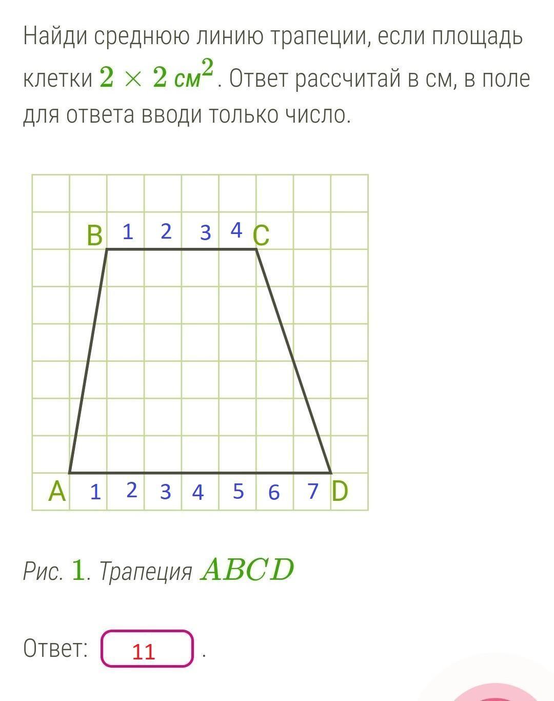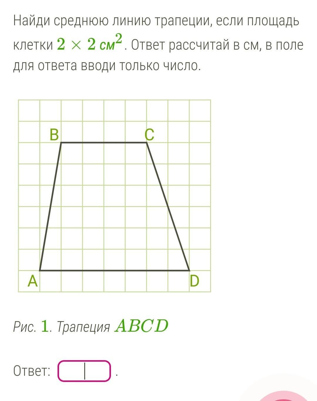 Так как по условию размер клетки 2 × 2 см², то из этого следует, что длинна стороны клетки 2 см.