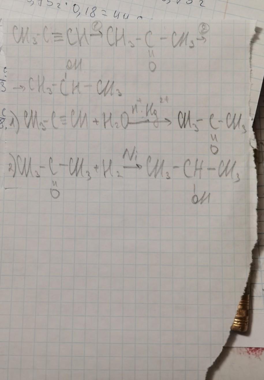 С-С≡С → С-СО-С → С-С(ОН)-С