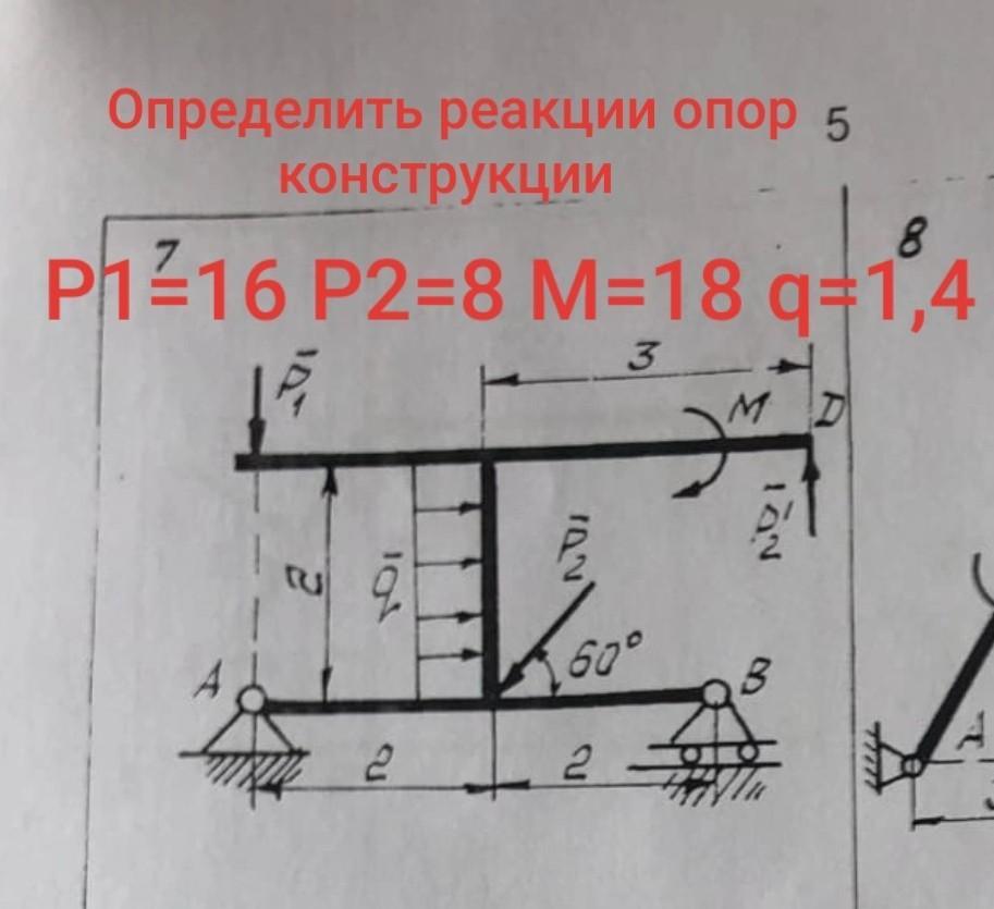 ∑Мв=0; Р1*4-Р*1-Rax*4+Р2*sin60°*2-M+Р2'*1=0