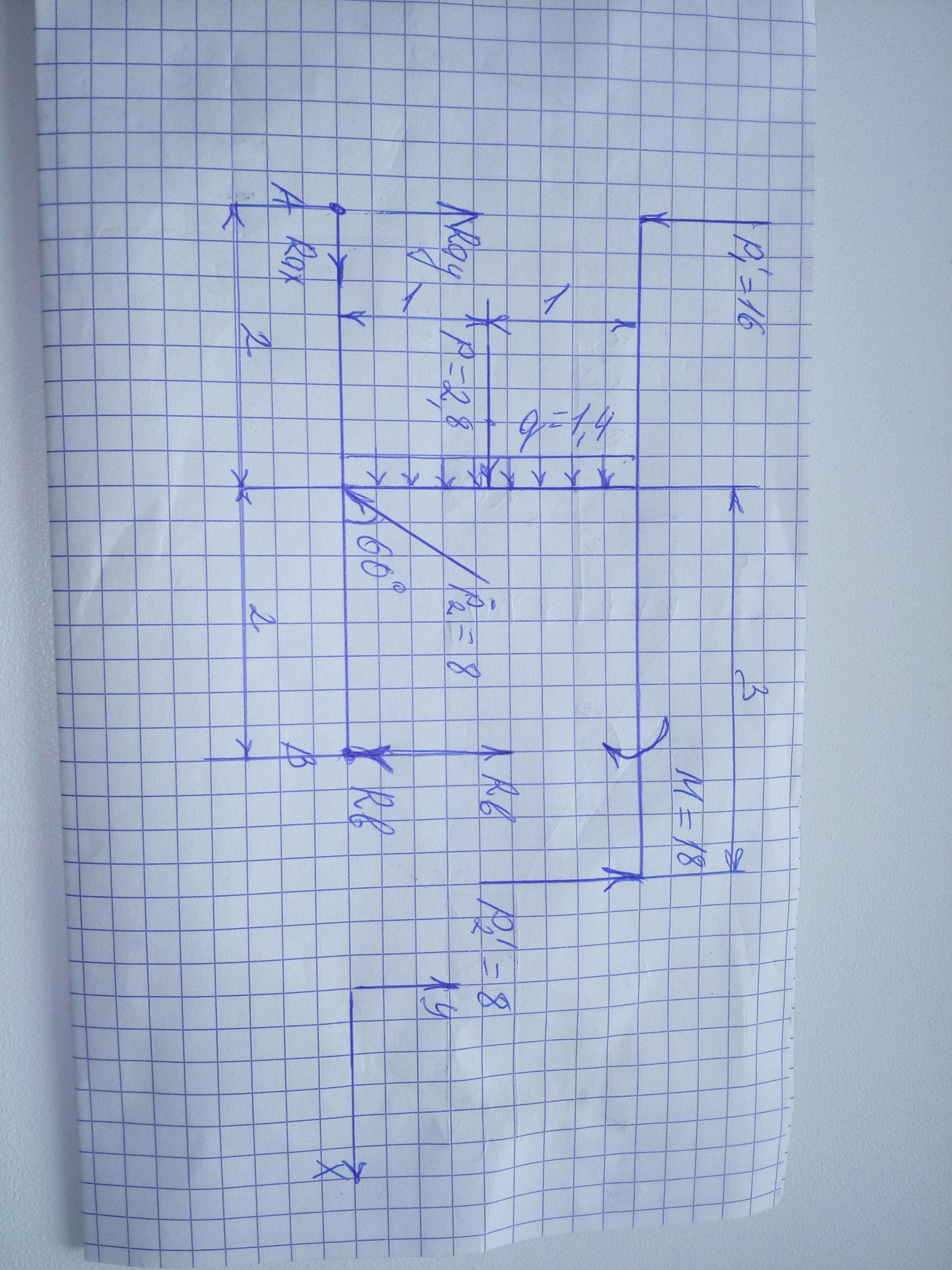 ∑Fy=0; Rax-Р1-Р2*sin60°+Rв+Р2'=0