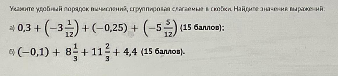 Укажите удобный порядок вычислений,сгруппировав слагаемые в скобки.найдите значения выражений
