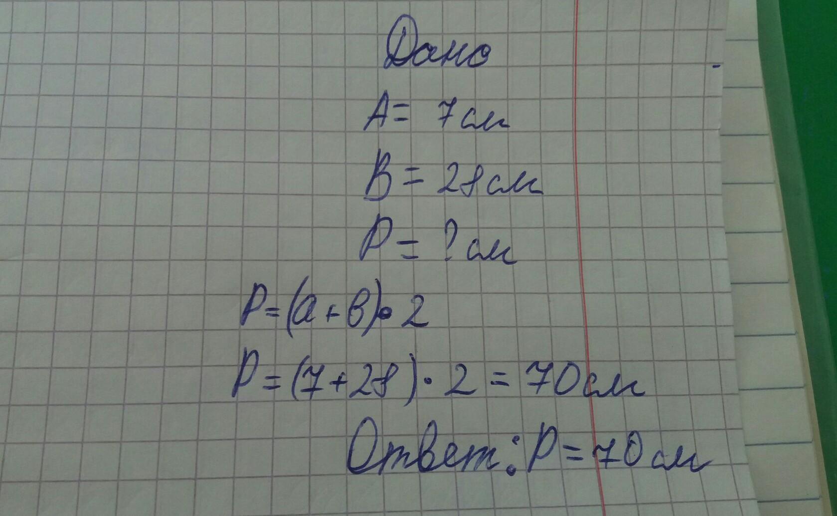 1. Стороны прямоугольника равны 7 см и 28 см, Найти периметр равновеликого квадрата.