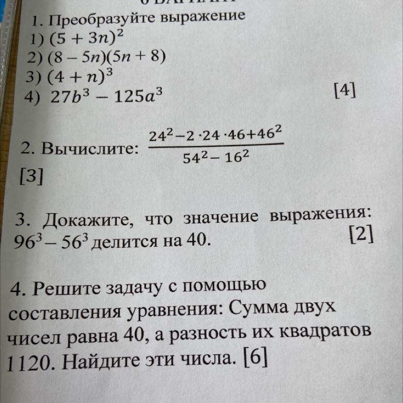 96^3 - 56^3 = 8(12^3 - 7^3) = 8(12 - 7)(144 + 84 + 49) = 8*5(144 + 84 + 49) = 40(144 + 84 + 49)=> делится на 40.
