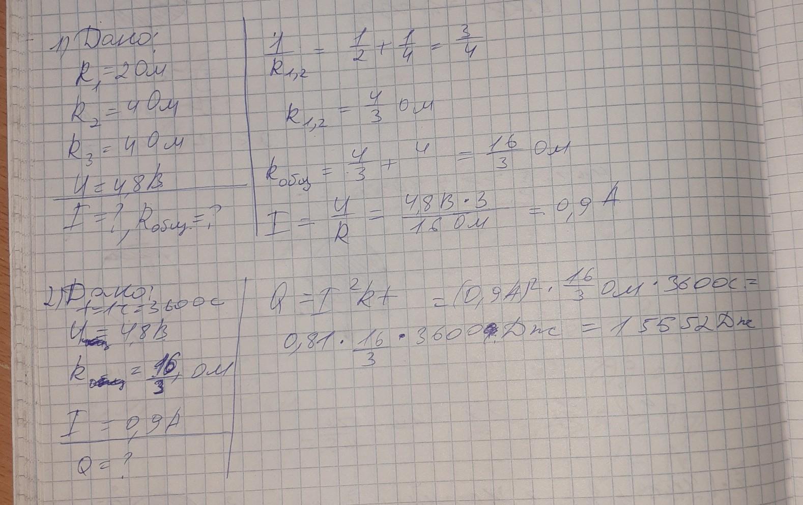 2) Определите общее сопротивление в проводнике, и найдите силу тока, если напряжение в цепи равно 4,8 В