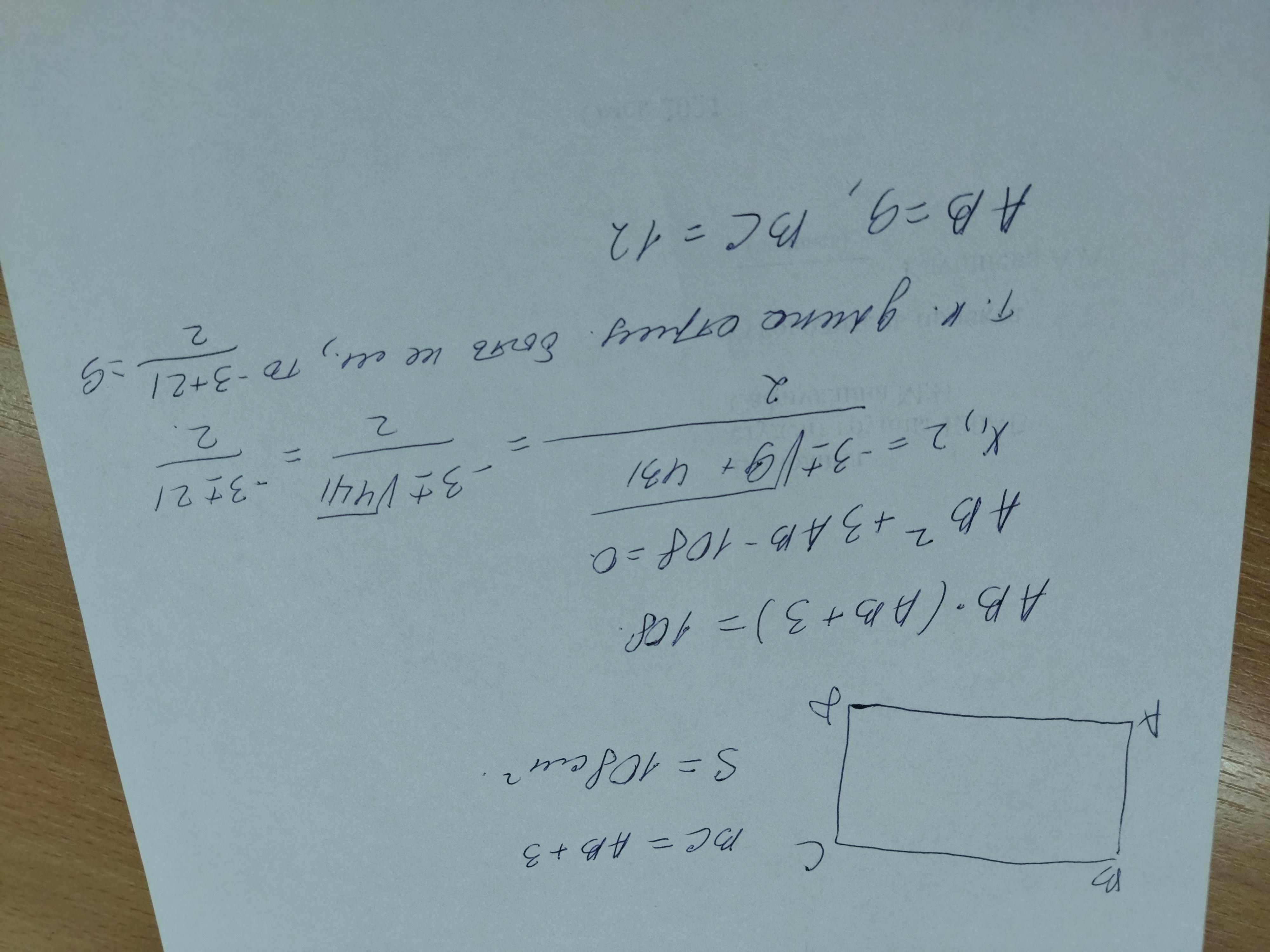 . В прямоугольнике ABCD длина ВС больше его длины АВ на 3 см, а его площадь равна 108 см2. Найди AB и BC. Может знатоки, могут помочь
