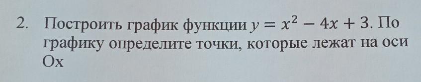2. Построить график функции у = х² — 4х + 3. По + графику определите точки, которые лежат на оси Ох