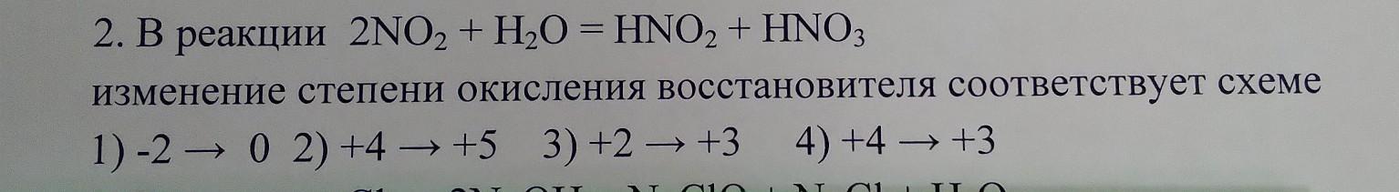 восстановителем является азот со степенью окисления +4, он же стал азотом со степенью окисления +3(если что это азот в соединении NO2), значит соответствует схема 4)