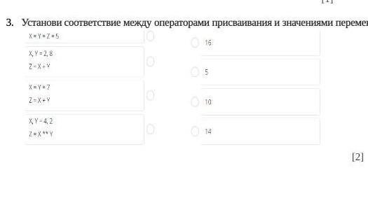 X,Y = 4,2; Z=X**Y(X^Y) => 16