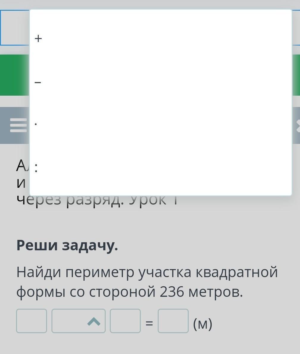 т.к сторона=236 метров,а участок квадратной формы, периметр будет равен:4x236м=944м