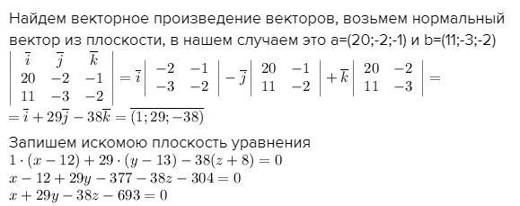 Запишите уравнение плоскости в виде x+By+Cz+D=0, которая проходит через точку M1(4,−8,−15) перпендикулярно двум плоскостям: