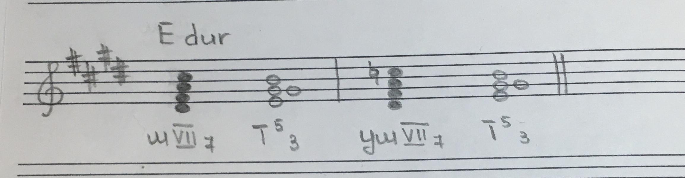 Построить вводные септаккорды ( малый водный уменьшенный водный) в тональности e-dur, cis moll.