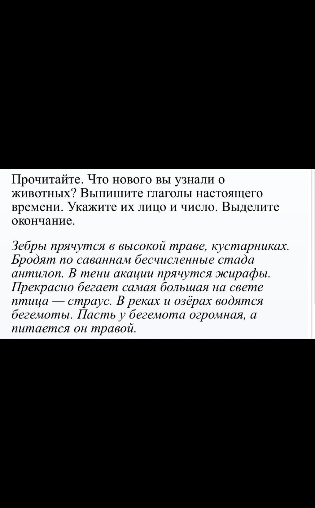 прочитайте что вы узнали о животных выпиши глаголы настоящиго времени укажи число выдел окончание Зебры прячуться на высокой травке кустарниках. Бродятпо сованнам бесчиленые стада