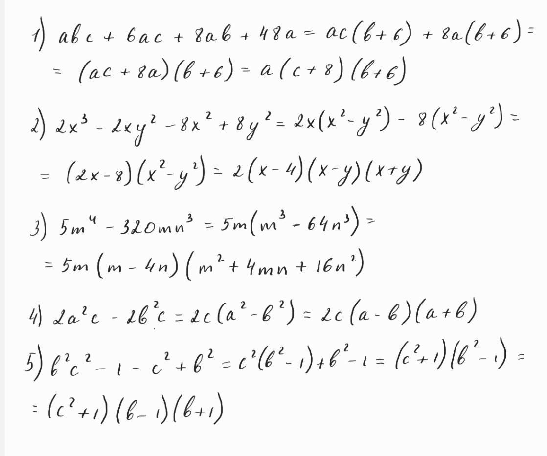 Ответ: 1. а*(бс+6с+8б+48)=ф*(с*(б+6)+8(б+6))= а*(б+6)*(с+8)